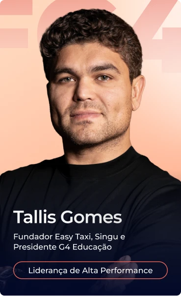 O G4 foi criado por Tallis Gomes (ex-Easy Taxi e Singu), Bruno Nardon (ex-Rappi e Kanui) e Alfredo Soares (ex-VTEX e XTech) — empreendedores que já escalaram negócios reais e hoje compartilham suas metodologias com milhares de empresários.