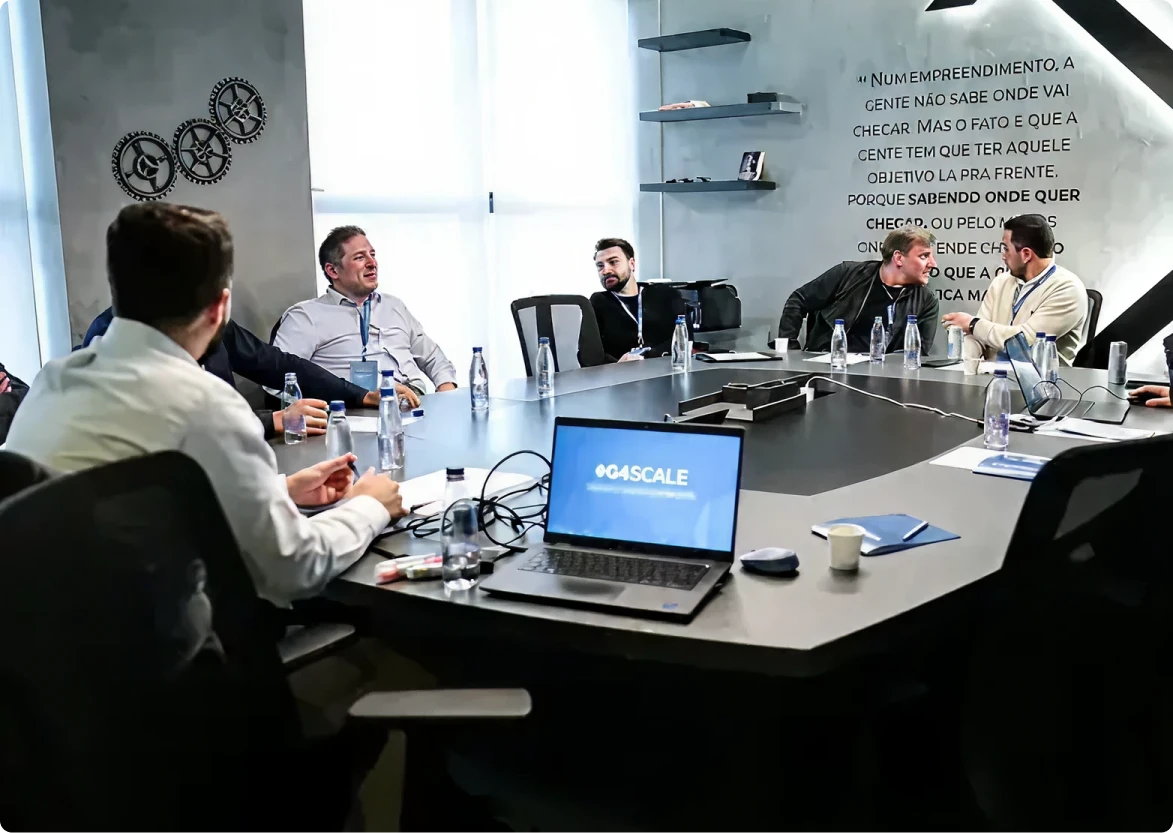 G4 Scale é um programa contínuo de execução e crescimento prático. Ideal para empresários que querem resolver problemas reais com estratégia, mentoria e acompanhamento próximo. Você participa de boards, mentorias e trilhas personalizadas com foco total na escala do seu negócio.