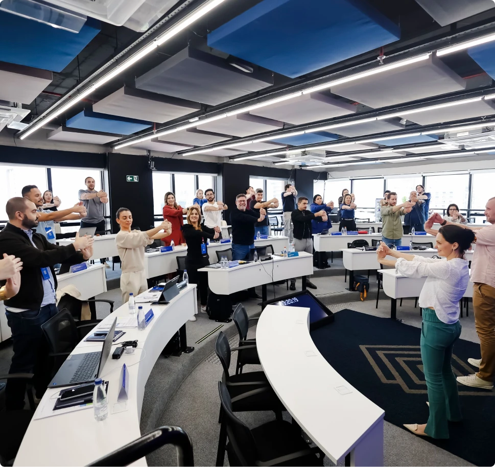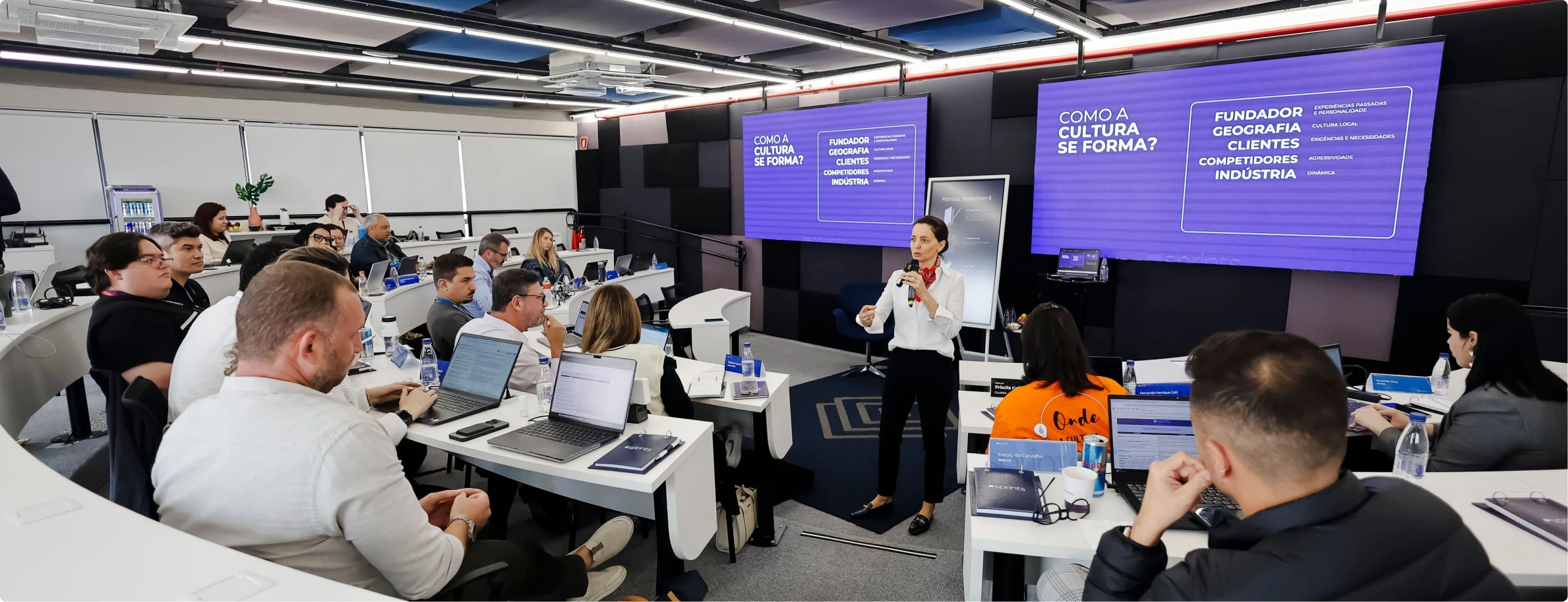 Participe de oficinas presenciais que alinham líderes e colaboradores para construir soluções aplicáveis no dia a dia.
